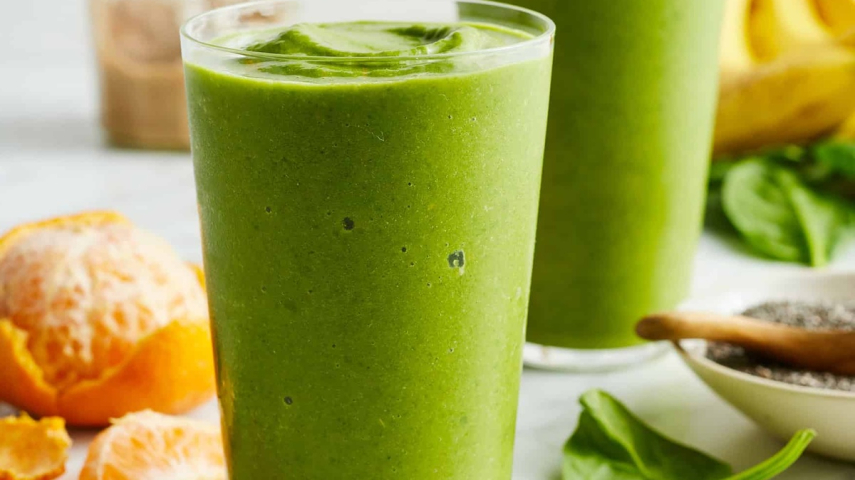 Je nach Wunsch kann man den grünen Spinatsaft auch mit Orangensaft, Ingwer und Banane mixen.